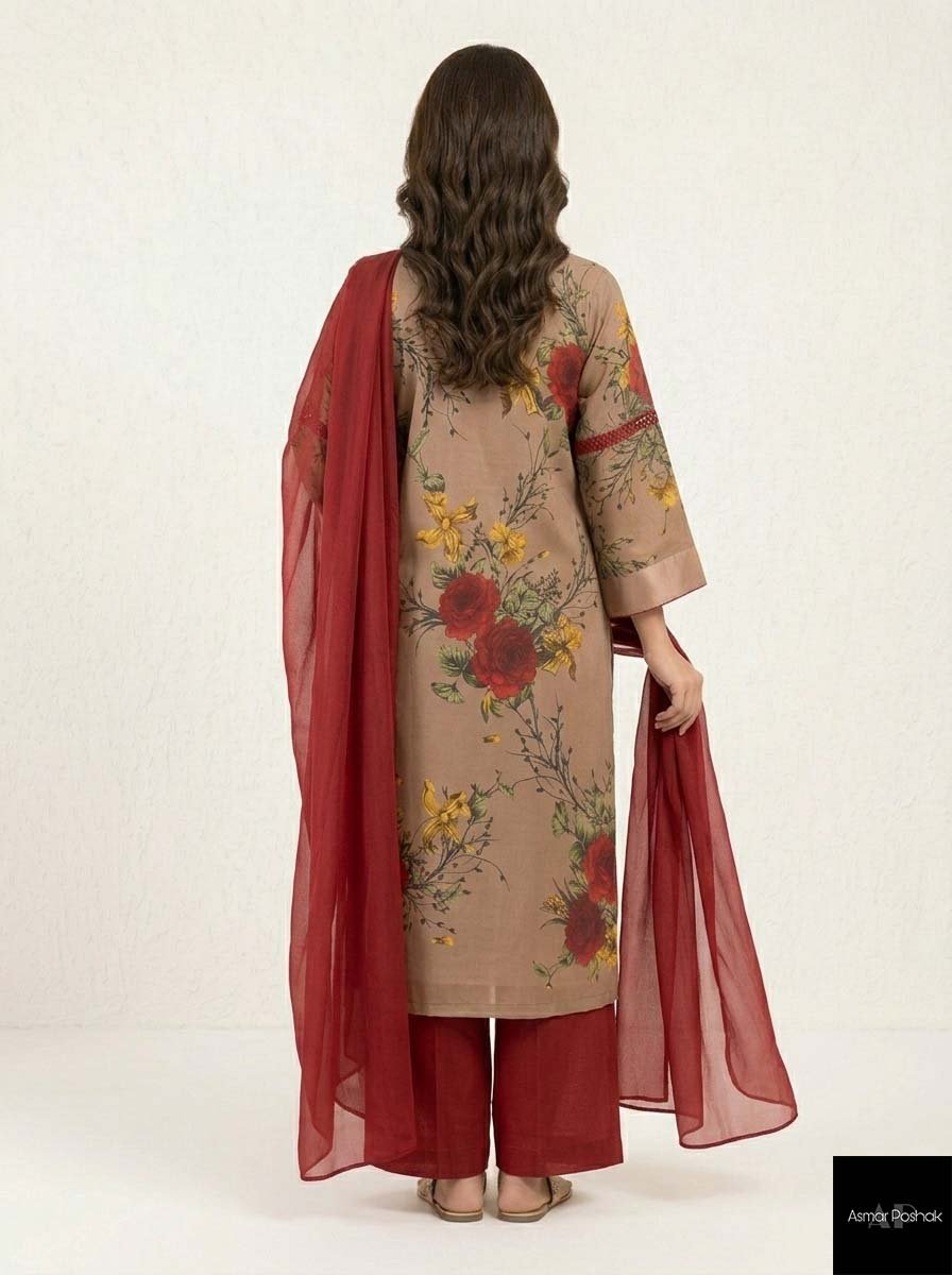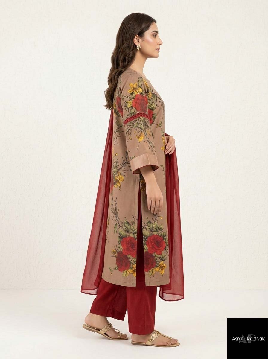 The Premium Lawn Shirt: The core of the outfit is a tailored shirt crafted from our signature artisanal lawn. Chosen for its stunning breathability and crisp finish, the lawn provides a flawless canvas for Western-fusion tailoring.
