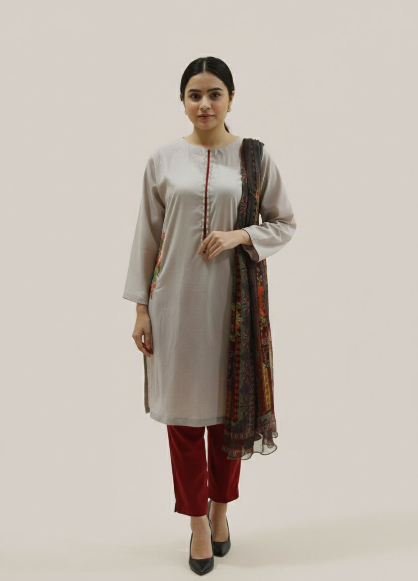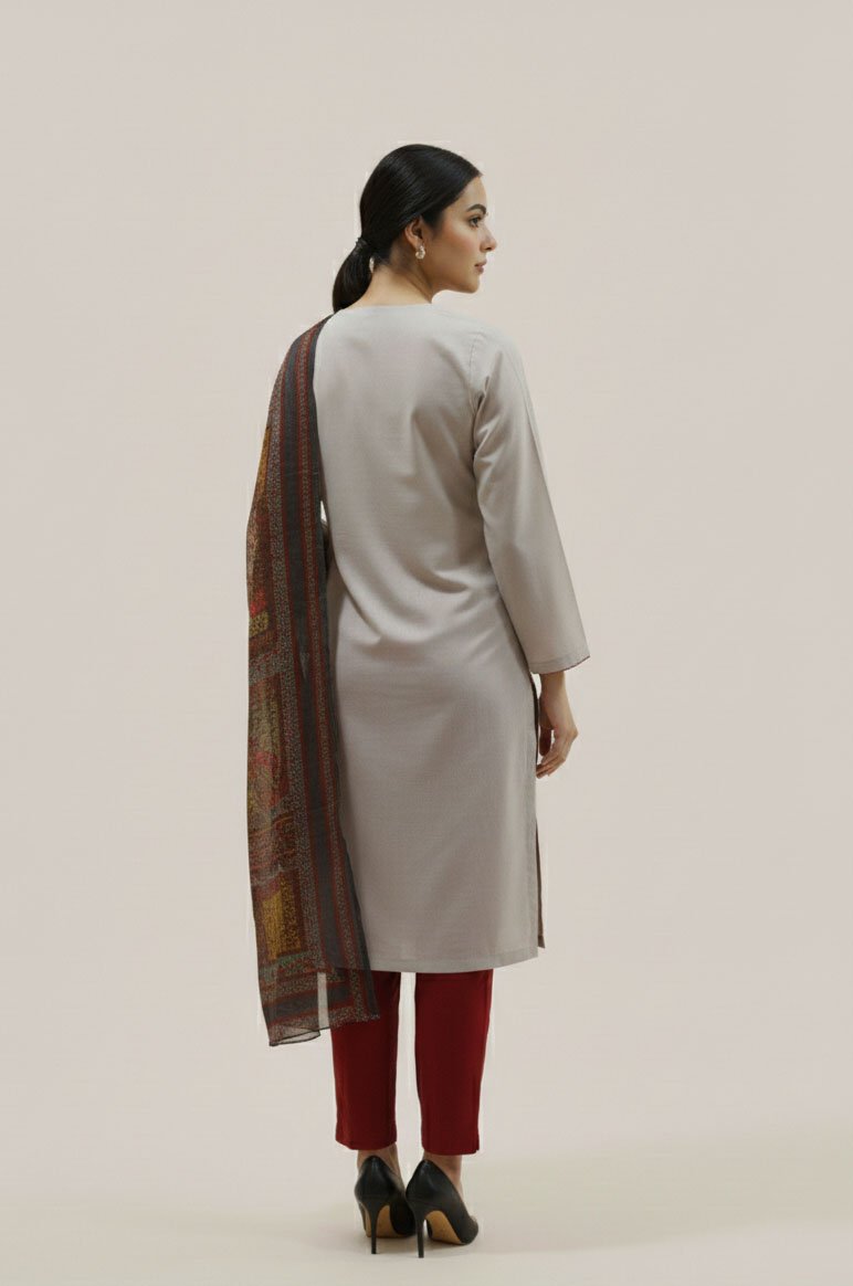 The foundation of the luxurious Celestia Shaffon Symphony is our high-grade, artisanal Lawn. Chosen for its lightweight, soft-to-the-touch feel, the lawn provides a regal drape for the kurta and trousers. To complete the ensemble, we have included a stunning shaffon dupatta. Known for its sheer, ethereal quality, the shaffon catches the air beautifully, providing a luxurious and radiant finish to the 3-piece collection.