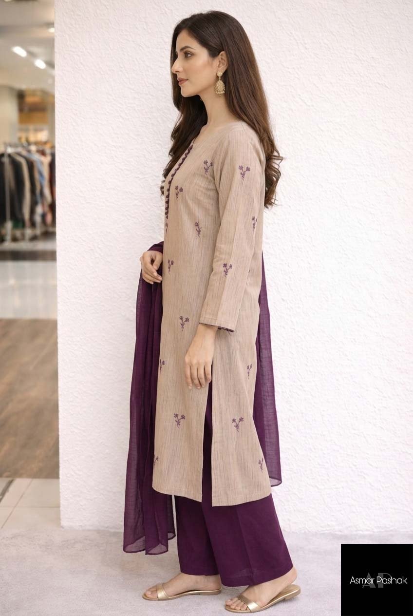 At Asmar Poshak, we don’t just create clothes; we create masterpieces. Each Crimson Filigree Suite undergoes a rigorous quality check to ensure every stitch of the machine embroidery is flawless and the lawn fabric maintains its luxurious softness. This 3-piece set is a testament to our commitment to regal quality and stunning design.