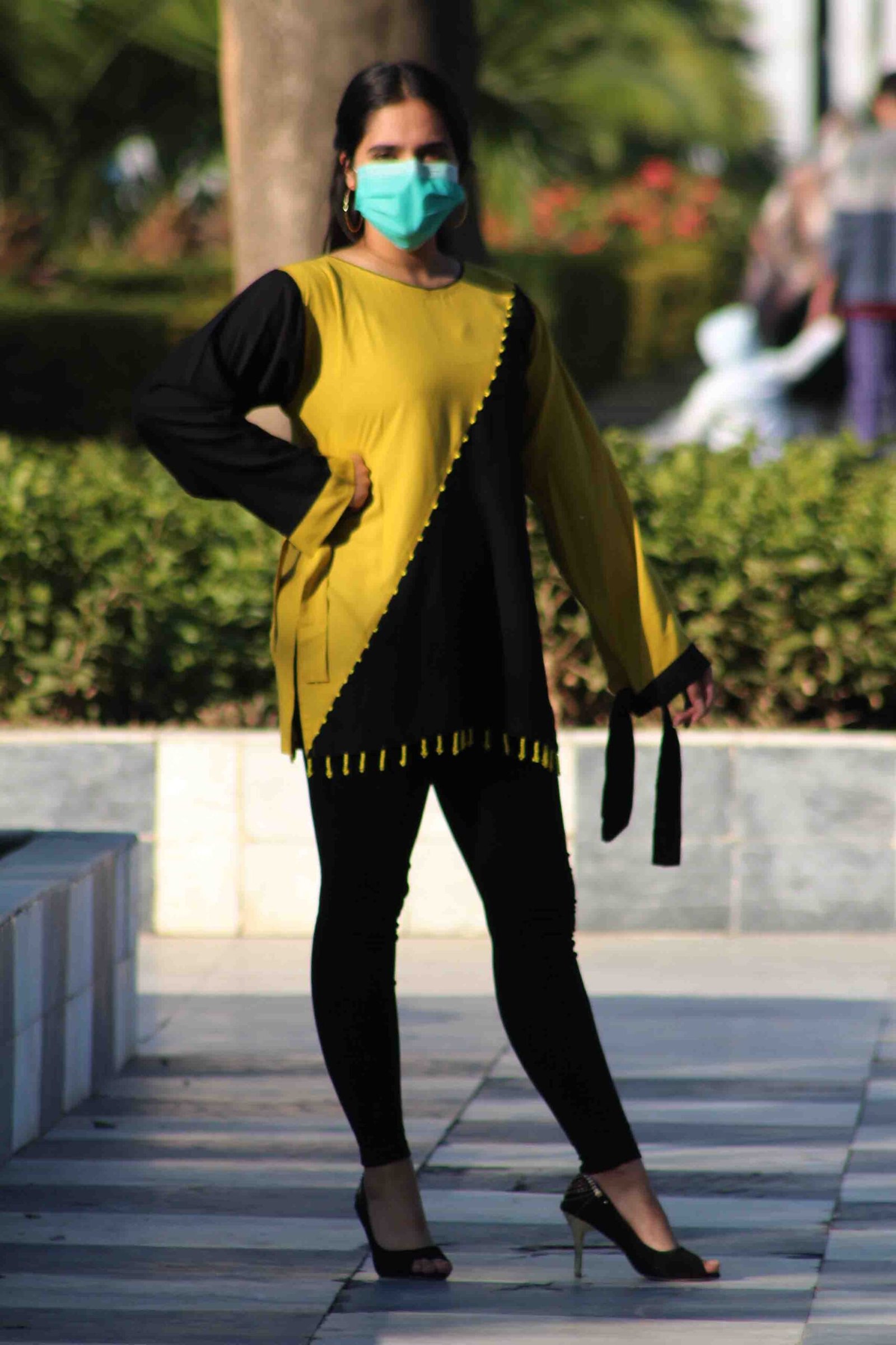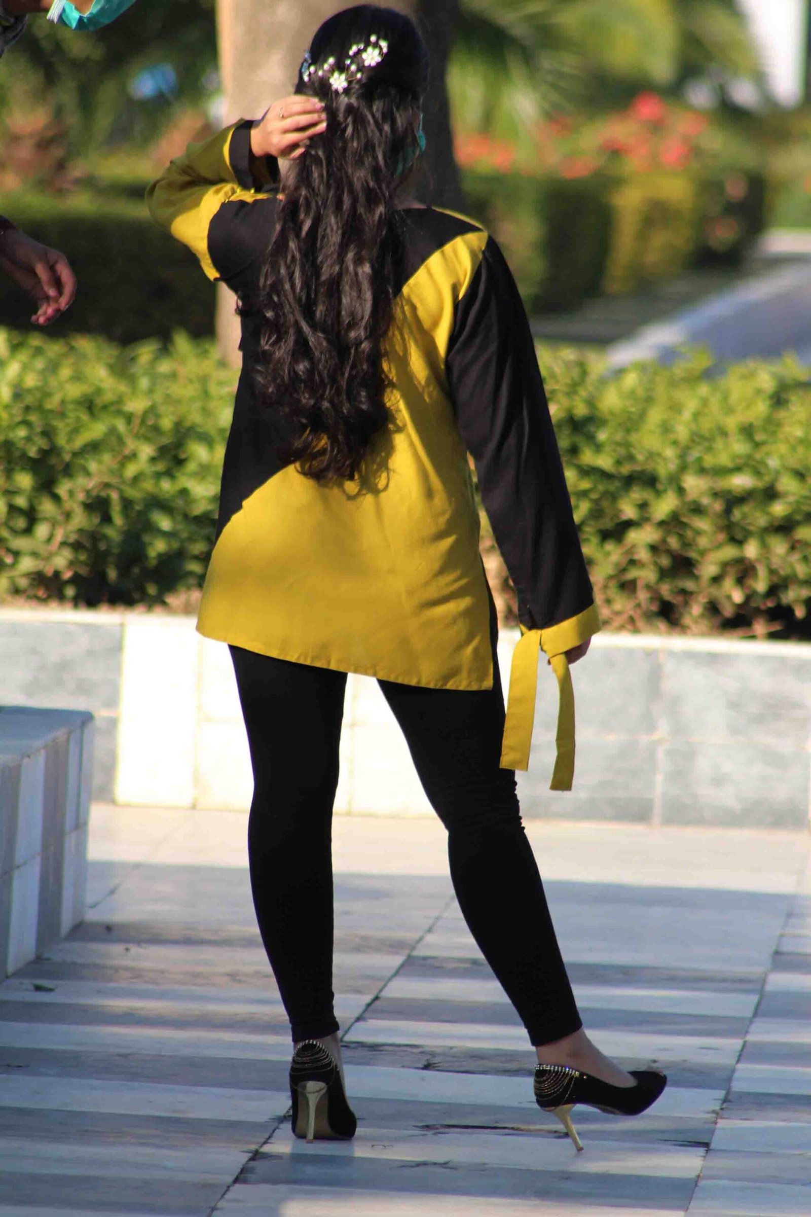 Step 3: The Statement Finish The final step is the integration of the hand work with the clean lines of the linen.Gilded Ebony Fusion Western kurta, a stunning yellow and black linen piece featuring exquisite hand work and a modern diagonal cut.