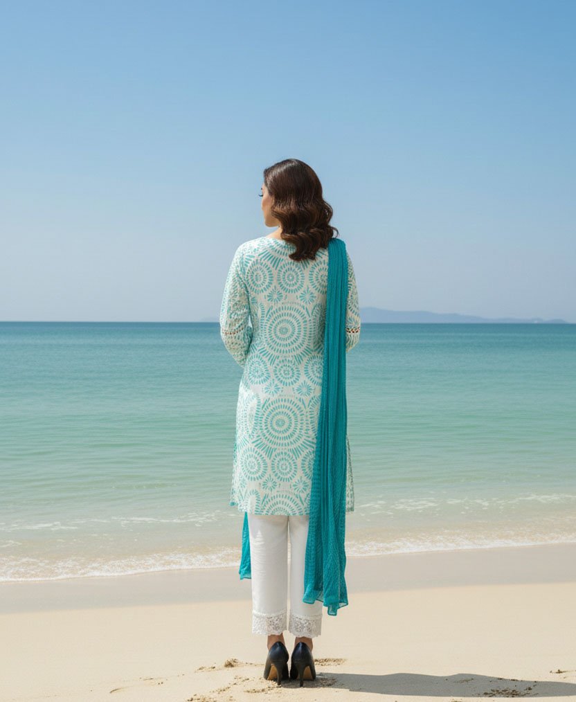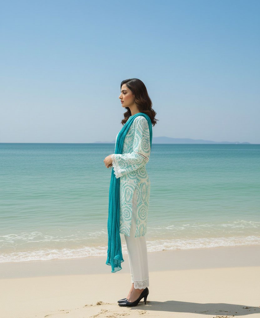• The Dupatta Drape: Carry the crush lawn dupatta on one shoulder to showcase its unique texture without losing the stunning look of the kurta.