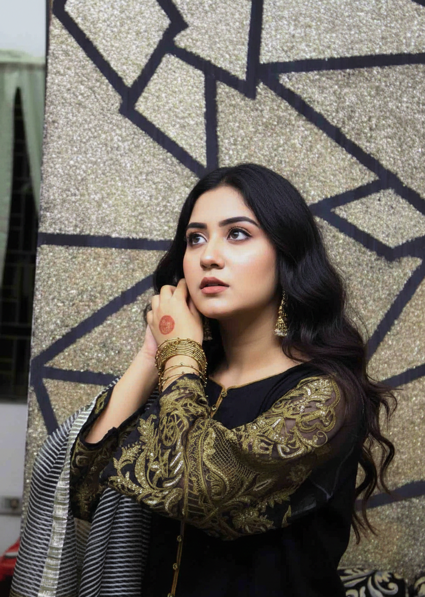 • The Evening Look: Pair your Obsidian Gilded Lawn with gold-toned sandals and traditional Jhumkas for a stunning and balanced Western-Ethnic fusion.